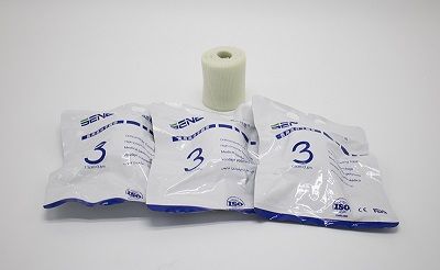 | 使用方法 | 1、將部位固定,棉墊襯里; 2、繃帶開封后,浸入常溫20℃~25℃水中約4~8秒鐘; 3、用力甩出余水,必須使用一卷拆開一卷,防止提前拆開硬化; 4、螺旋纏繞,1/3或1/2重疊6-9層; 5、拉緊纏繞,增強層間粘合力,但纏繞不可過緊,以免影響血液循環(huán),8~15分鐘開始固化; 6、包扎后在繃帶外面撳揉層與層充分粘接; 7、繃帶包扎后受潮可用電吹風吹干; 8、拆除時可用手術刀、電鋸。 |