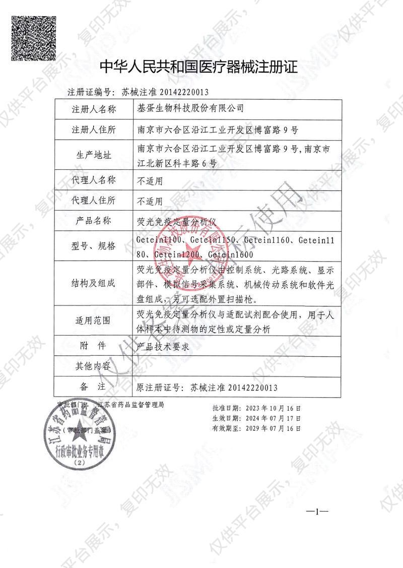 | 產(chǎn)品規(guī)格 | Getein1180 |