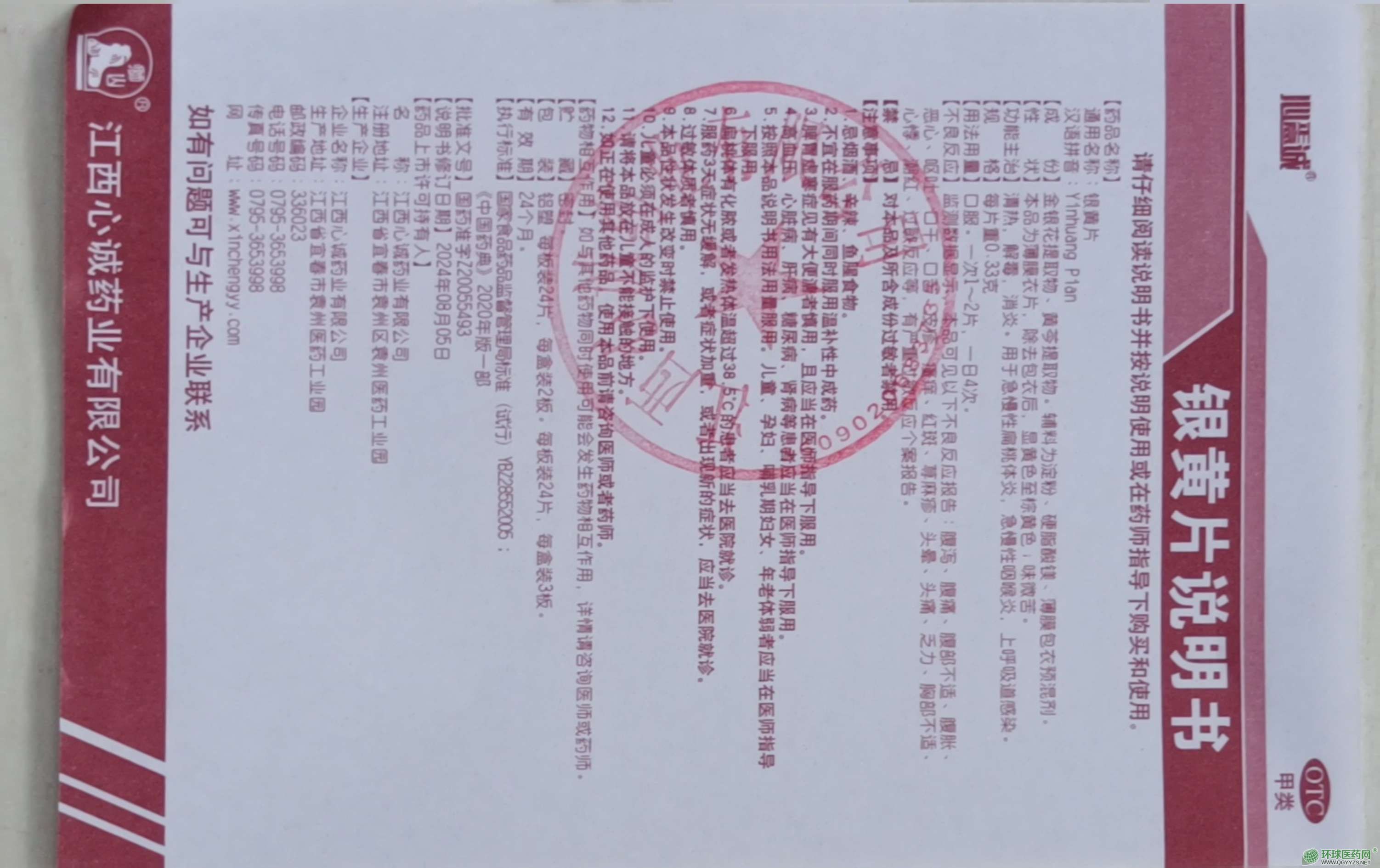 | 主要成分 | 金銀黃提取物、黃芩提取物。輔料為淀粉、薄膜包衣劑。 |