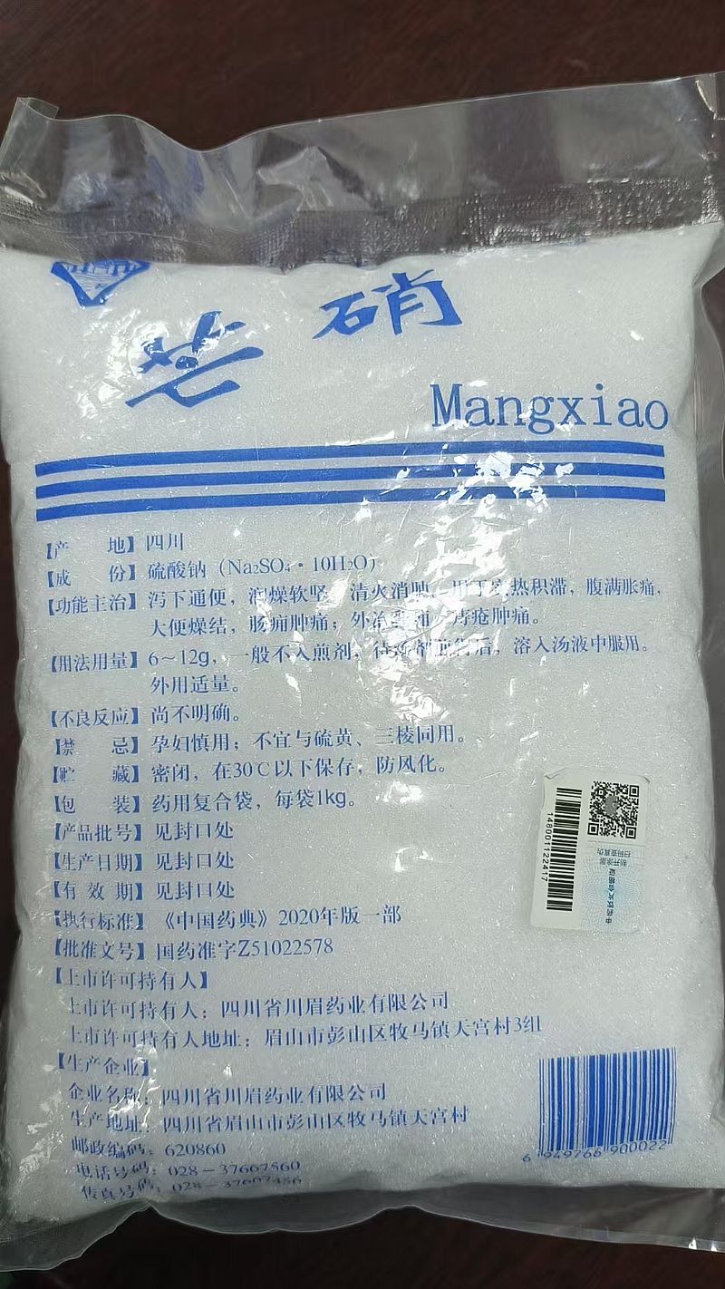 | 補(bǔ)充說明 | 本品為硫酸鹽類礦物芒硝族芒硝,經(jīng)加工精制而成的結(jié)晶體,主含含水硫酸鈉(Na2SO4·10H2o)。 【性味與歸經(jīng)】咸、苦,寒。歸胃、大腸經(jīng)。 【注意】孕婦慎用;不宜與硫黃、三棱同用。 【貯藏】密閉,在30℃以下保存,防風(fēng)化。 |