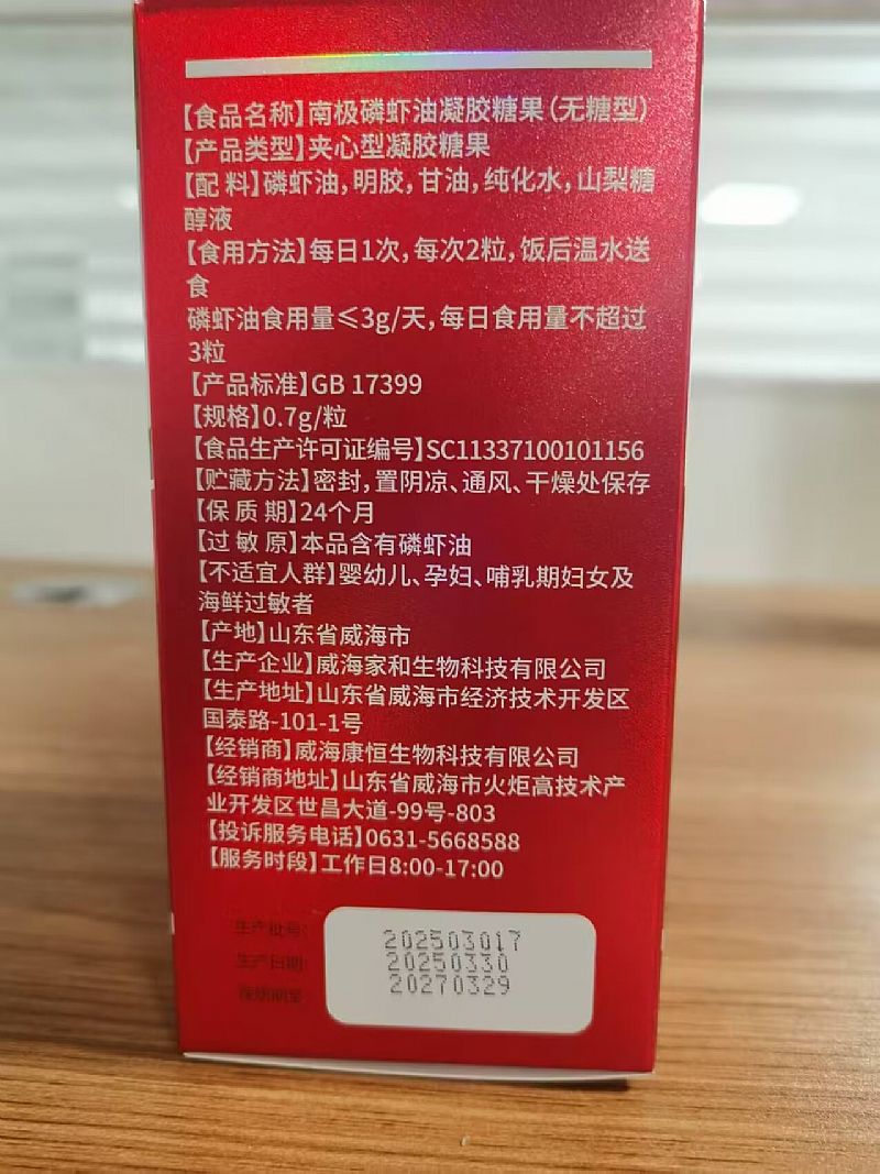 | 產(chǎn)品名稱 | 南極磷蝦油凝膠糖果(無糖型) |