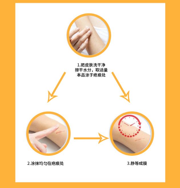 | 使用方法 | 將疤痕部位清潔干凈,然后取適量的凝膠將其均勻涂抹至疤痕處。 |