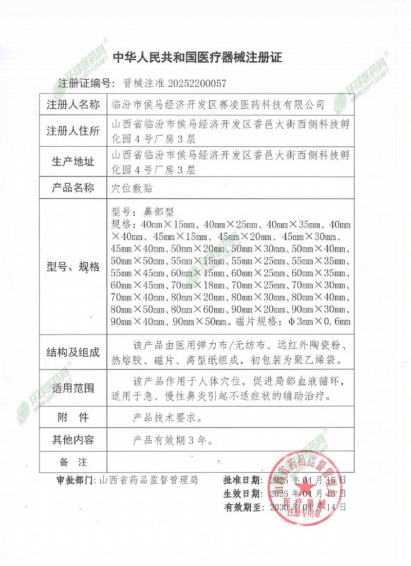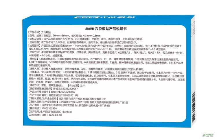 | 產(chǎn)品用途 | 該產(chǎn)品作用于人體穴位,促進(jìn)局部血液循環(huán),適用于急慢性鼻炎引起不適癥狀的輔助治療。 |