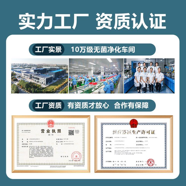 4、權(quán)威認(rèn)證:國(guó)家FDA認(rèn)證的一類醫(yī)療器械文號(hào),藥監(jiān)局可查,十萬級(jí)凈化標(biāo)準(zhǔn)生產(chǎn)車間,品質(zhì)有保障。