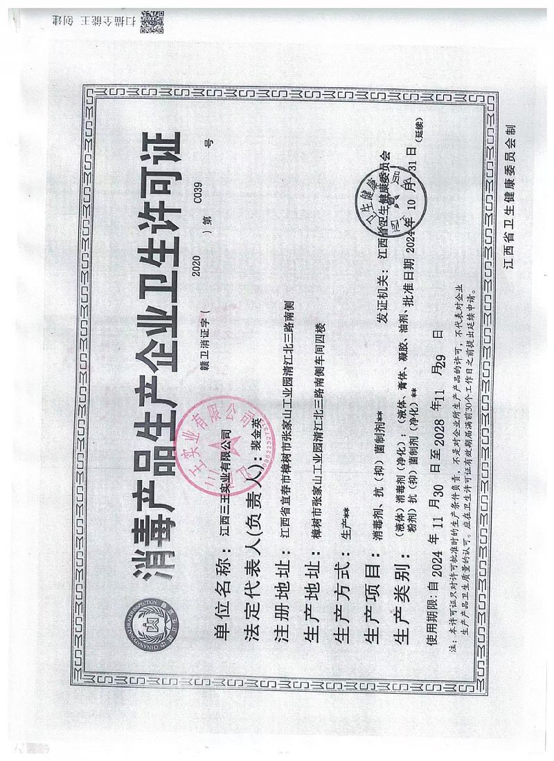 批準(zhǔn)文號(hào): 贛衛(wèi)消證字2020第c039號(hào)