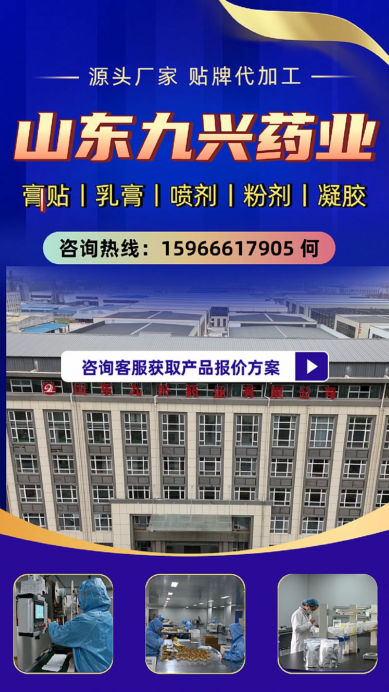 | 產(chǎn)品賣點 | 山東九興藥業(yè)膏藥加工廠家,一二類械、健字號、企業(yè)標(biāo)準(zhǔn),資質(zhì)齊全。專注各類膏藥、穴位貼、小兒貼、三伏貼、理療貼、熱療貼、疼痛類凝膠等貼牌加工服務(wù),臨床中標(biāo)掛網(wǎng)可醫(yī)保報銷。支持定制**尺寸、材質(zhì),資質(zhì)齊全,免費打樣,一站式服務(wù),幫您打造屬于自己的膏藥品牌!膏藥貼牌加工:15966617905 |
