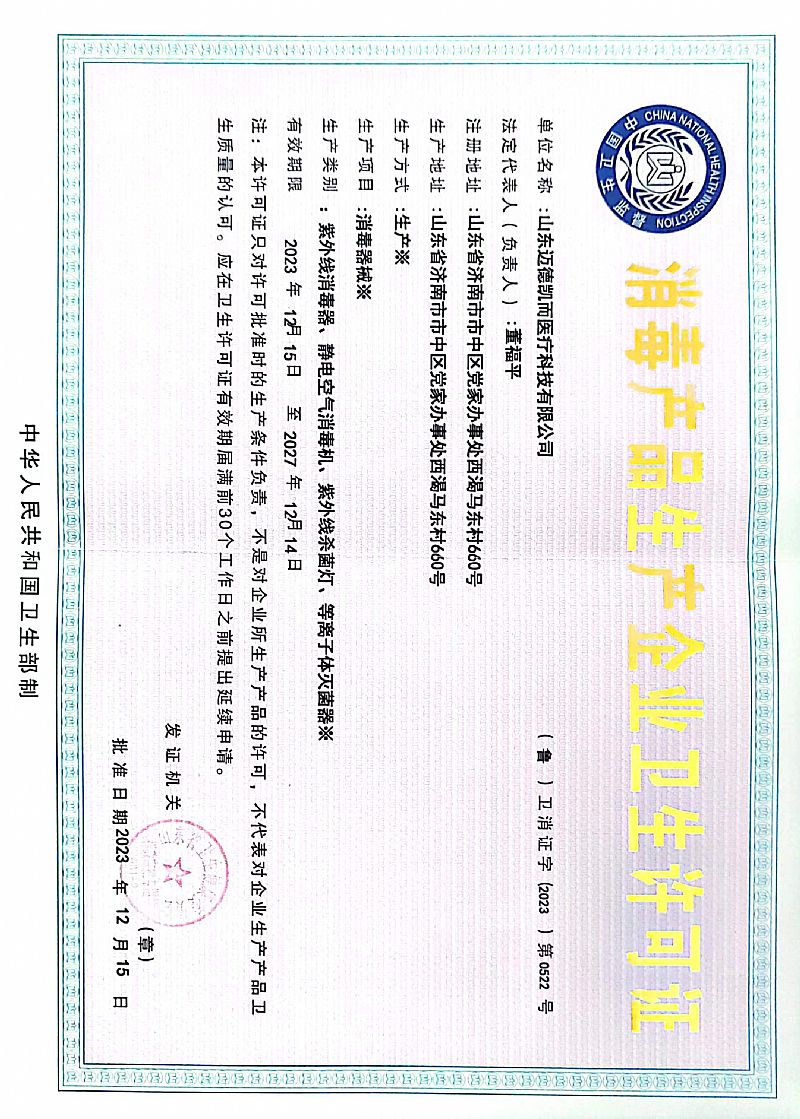 批準文號: 魯衛(wèi)消證字2023第0522號
