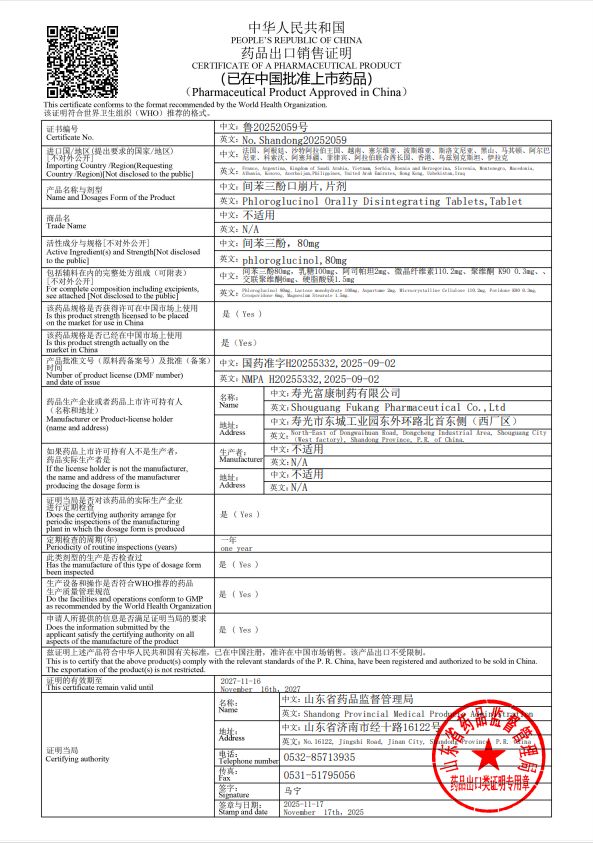 | 通用名稱 | 間苯三酚口崩片 |