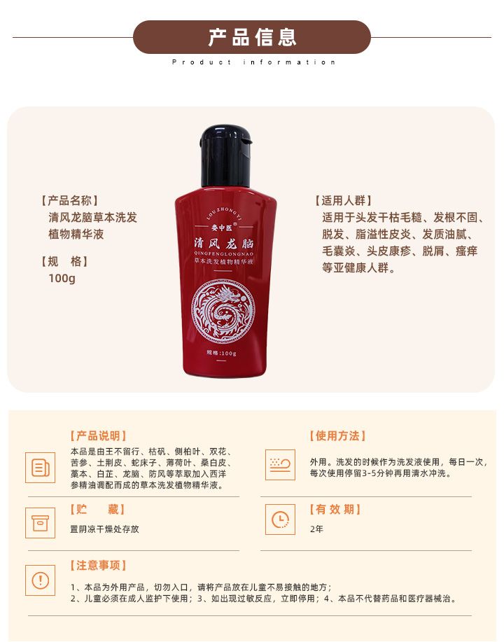 | 產(chǎn)品名稱 | 清風(fēng)龍腦草本洗發(fā)植物精華液 |