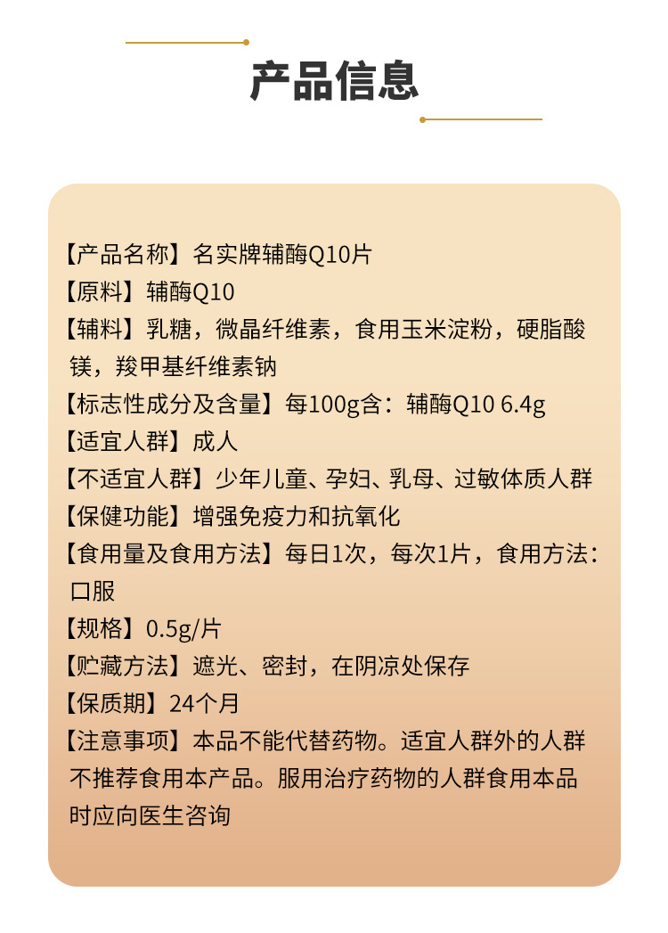 | 產(chǎn)品名稱(chēng) | 名實(shí)牌輔酶Q10片 |
