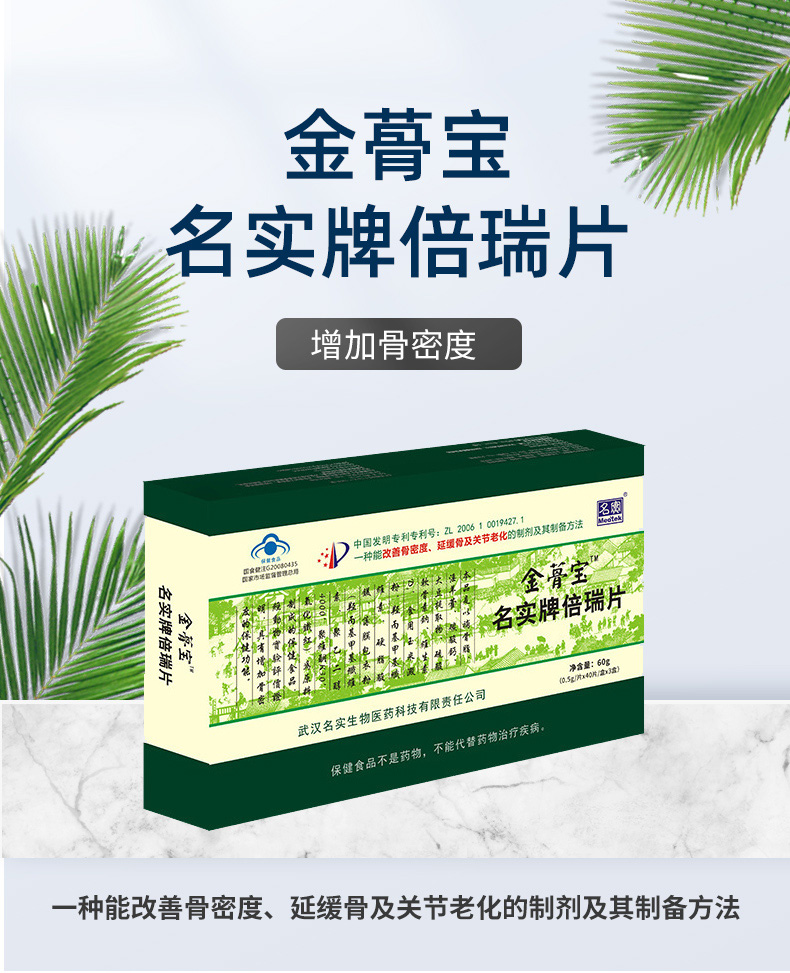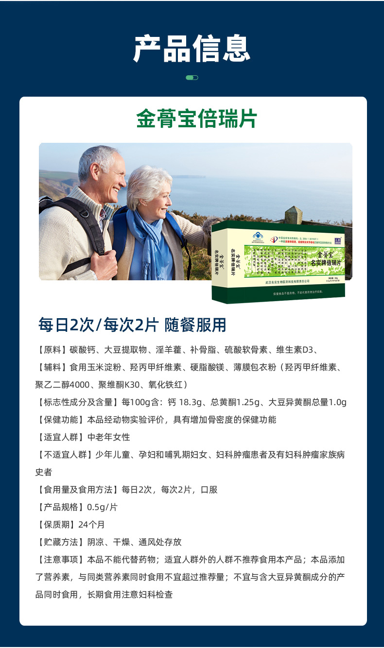 | 主要成分 | 碳酸鈣、大豆提取物、淫羊藿、補骨脂、硫酸軟骨素、維生索D3 |