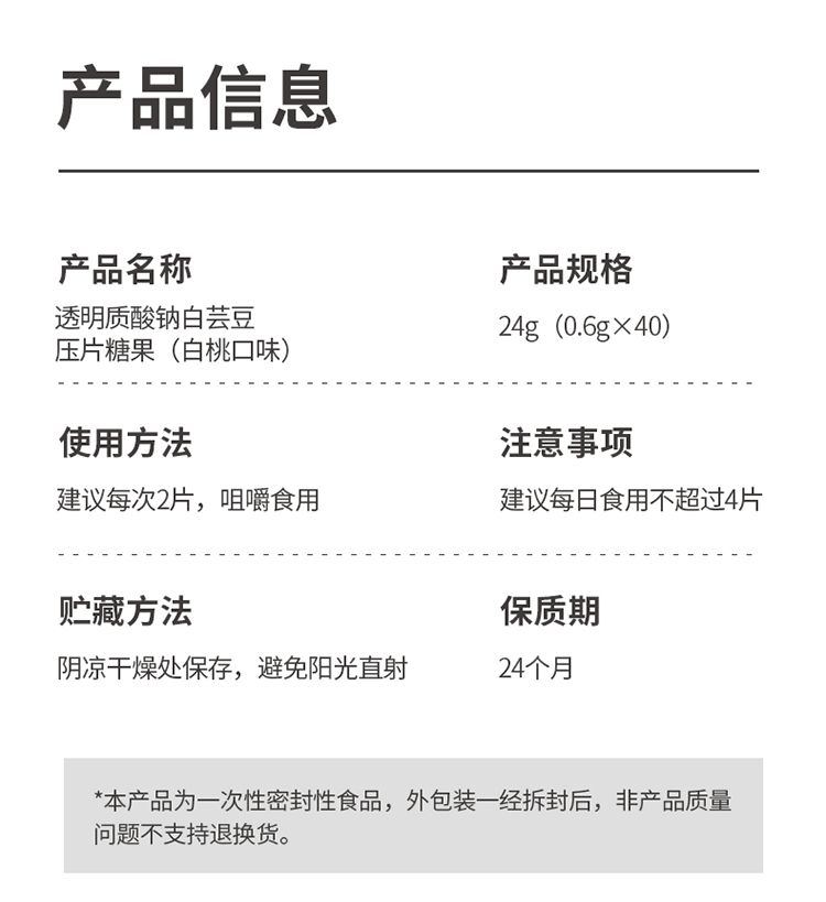 | 產品名稱 | 透明質酸鈉白蕓豆壓片糖果 |