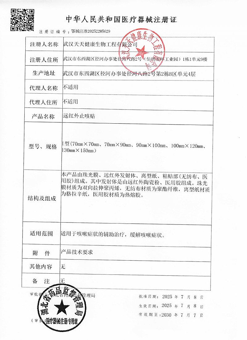 產(chǎn)品名稱: 遠(yuǎn)紅外止咳貼