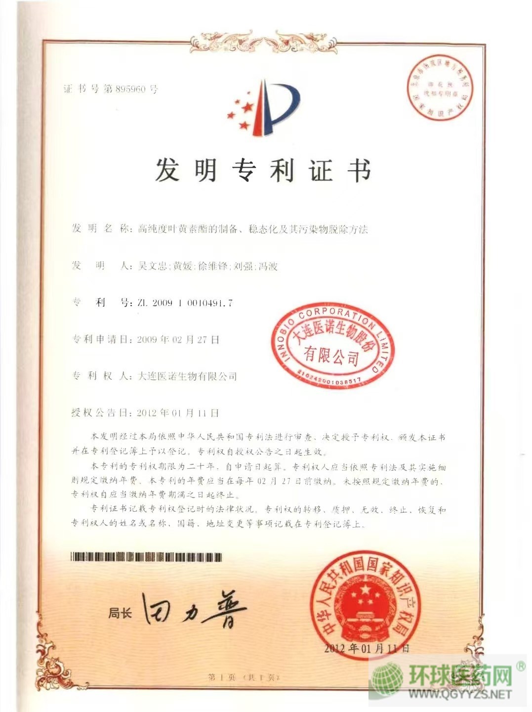 生產(chǎn)企業(yè): 大連醫(yī)諾生物股份有限公司