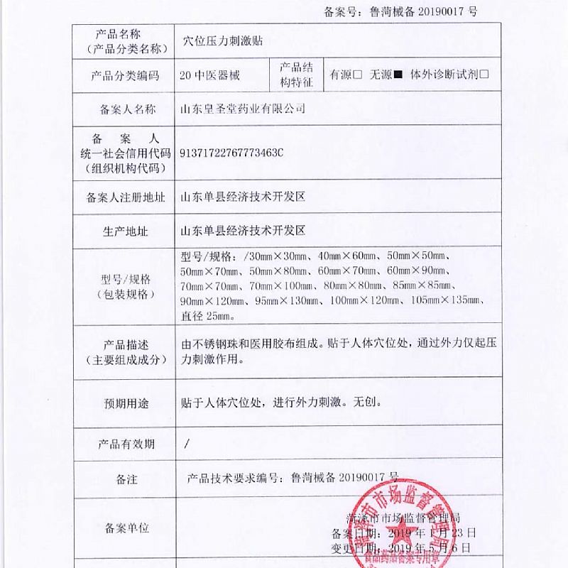 批準(zhǔn)文號(hào): 魯菏械備20190017號(hào) 【驗(yàn)證真?zhèn)?/a>】