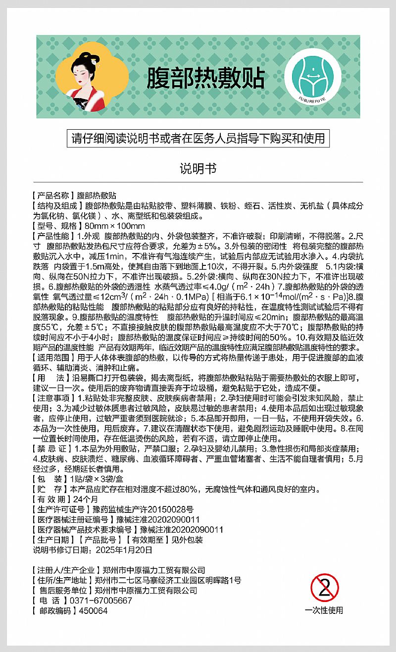 | 產(chǎn)品用途 | 用于人體腹部的熱敷,促進腹部的血液循環(huán).輔助消炎.消腫.止痛 |