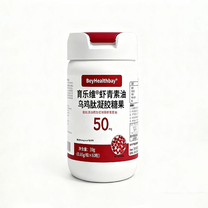 | 產(chǎn)品名稱 | 育樂維蝦青素油烏雞肽凝膠糖果 |