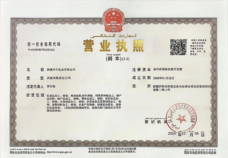 生產(chǎn)企業(yè): 新疆天牛乳業(yè)有限公司