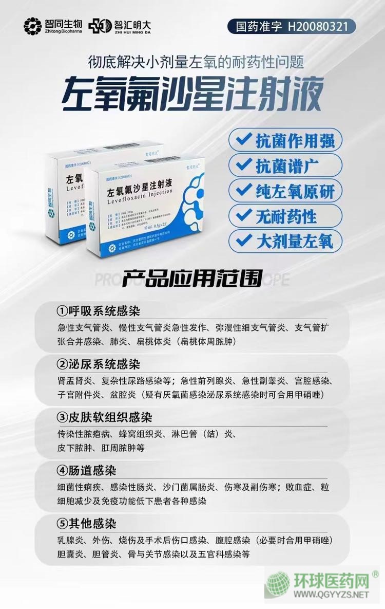 | 產(chǎn)品賣點 | 控銷,深耕終端14年。1.智同左氧氟沙星注射液是做不含酸根做終端的左氧。2.臨床時間長!3.沒有發(fā)紅發(fā)癢以及腸胃的反應(yīng)。4.0.5g大劑量效果好,沒有耐藥性。一天一次預(yù)防交叉感染。5.效果好,一般感染只需要用左氧氟沙星就行,不需要聯(lián)合用藥 |