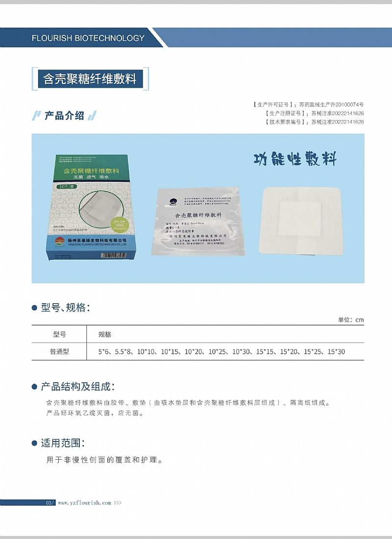 | 產(chǎn)品名稱 | 含殼聚糖纖維敷料 |
